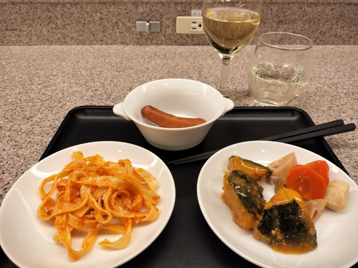 ブティックラウンジは食べ物、飲み物は質素な感じです。