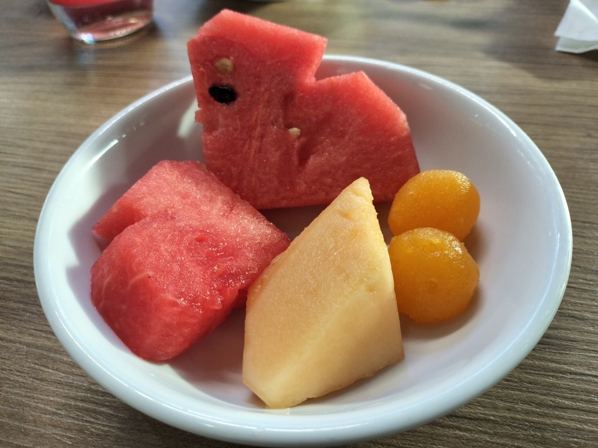 さっき機内食を食べたところですが、ここでも朝食を。
